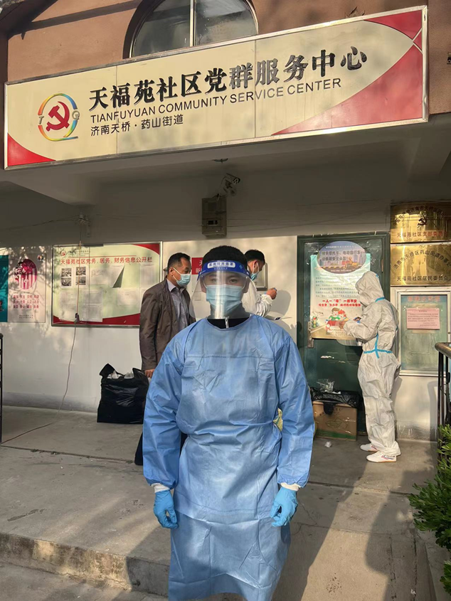 4月27日一早,來自濟南科技創(chuàng)業(yè)投資集團有限公司黃金和張澤陽就趕赴胥家村,站好健康查驗點的第一班崗;濟南經(jīng)發(fā)基金管理有限公司的崔家浩與天橋區(qū)天福苑檢測點人員正做著做好核酸檢測維持秩序工作;濟南產(chǎn)發(fā)資產(chǎn)管理有限公司的任政分配到槐蔭區(qū)興福街道濟西社區(qū),與其他參與防疫的人員一起接受崗前培訓后,迅速上崗;濟南經(jīng)發(fā)中小企業(yè)服務(wù)有限公司的謝炳怡與小鴨集團的劉玉峰、金德利集團的劉相濤一起前往高新區(qū)臨港街道,接受工作任務(wù)。隨后,趙梓淇、董振興、高志翔、張樂等幾名同事也投身于防疫的志愿者隊伍中。