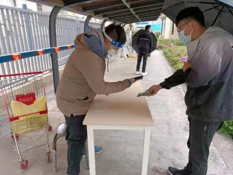 “大娘,您慢點”“請?zhí)崆皽蕚浜枚S碼”“請注意防護,保持一米間距” ……在現(xiàn)場,對待行動不便的人員,他們主動上前攙扶,協(xié)助居民進行掃碼、實名認證,并囑咐大家佩戴好口罩,做好防控措施。據(jù)了解,由于社區(qū)管制等客觀因素限制,在有志愿者無法參與下沉社區(qū)疫情防控的前提下,資本集團綜合部迅速行動,驅(qū)車21公里帶著同事一起去社區(qū)報道。從早上8點到崗,直到晚上10點多才結(jié)束一天的工作。雖然28日當天還下著雨,天氣陰冷潮濕,但大家的心是火熱的。他們以熱情的服務(wù)做好志愿者工作,以實際行動詮釋責任、使命和擔當,為防疫工作貢獻自己的力量。
